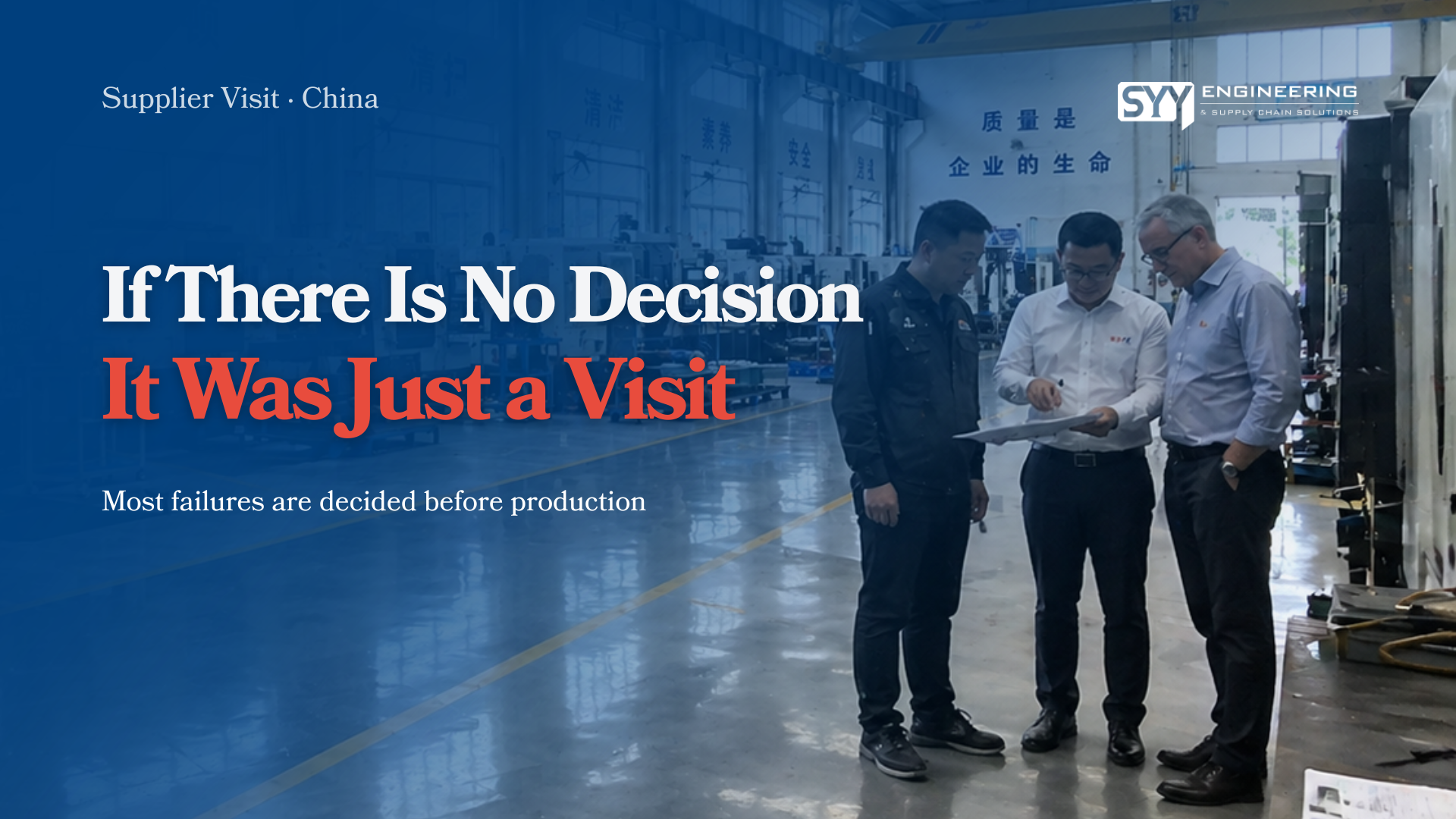 在中国考察前先定义决策。SYY通过工程方法帮助企业筛选供应商、减少不确定性,并避免错误选择带来的成本与风险。